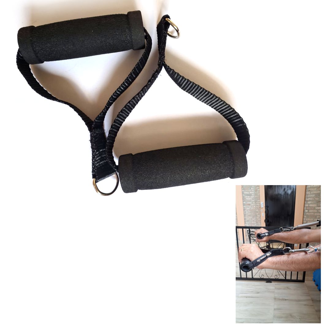 Par de puxadores de mão, fabricacao em fita de nylon 25mm , manoplas de espuma e tubo de PVC, argola soldada